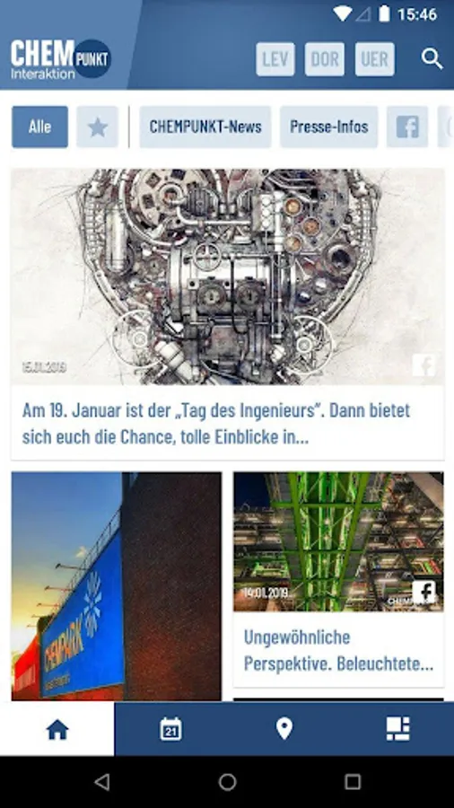 This app is a guidepost for the neighborly environment of the CHEMPARK in Leverkusen, Dormagen and Krefeld-Uerdingen. With the app CHEMPUNKT Interaction the CHEMPARK operator CURRENTA informs you comprehensively about current news, event announcements, menus in the canteens and much more. CURRENTA is a location service provider and a joint venture of Bayer and LANXESS.