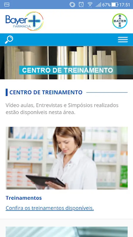O aplicativo Bayer Mais Farmácia é um canal de informação para profissionais que atuam em farmácias e drogarias. Proporcionando um relacionamento dinâmico e interativo, visa o aprimoramento profissional por meio de conteúdo qualificado com a credibilidade da Bayer.