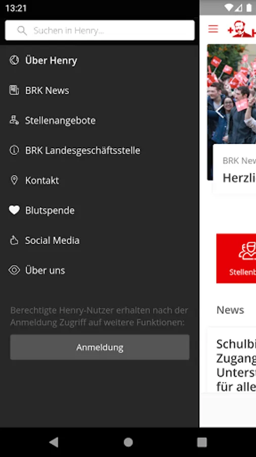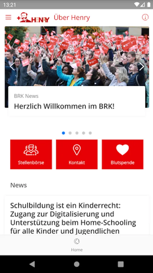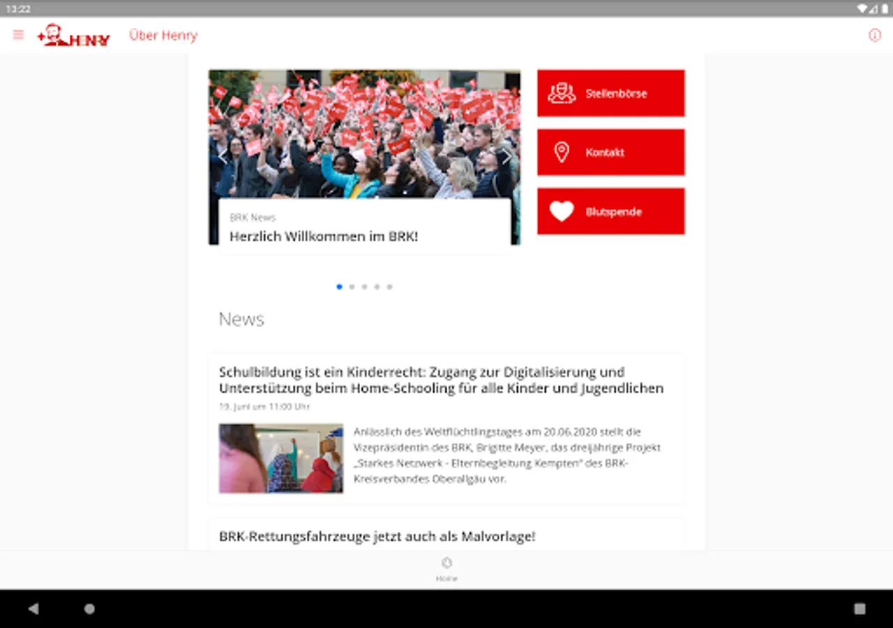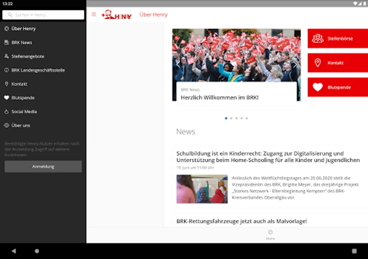 With Henry, the Bavarian Red Cross makes an app available to everyone who is interested in a career at the BRK or who is already part of our community. External and internal interested parties can find current information from the world of the BRK, current press releases and the BRK job portal here. Additional functions are available to employees of the BRK. The use of Henry is voluntary for all users.