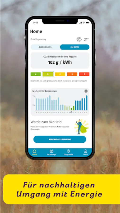 Bayernwerk ÖkoHeld is the only app with which you can see the energy mix of your region in real time for free: when is the highest production of regional green electricity in your district? What percentage of energy from wind, hydropower, photovoltaics and biomass is now available? You can adapt your energy consumption to the availability of energy from renewable energy sources. In this way you optimize a measurable ecological behavior towards electricity and reduce your CO2 emissions sustainably.
