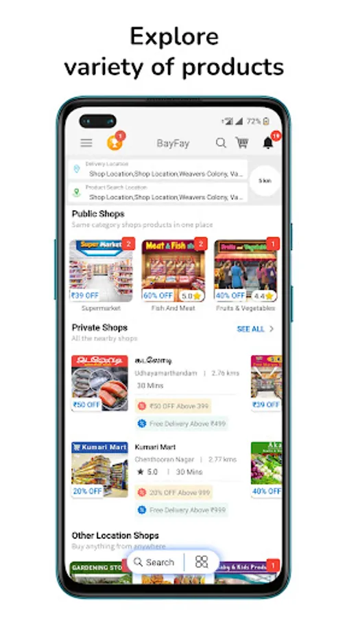 Get home delivery on BayFay, purchase everything from nearby shops, restaurants, groceries, buy online medicine, purchase meat online.