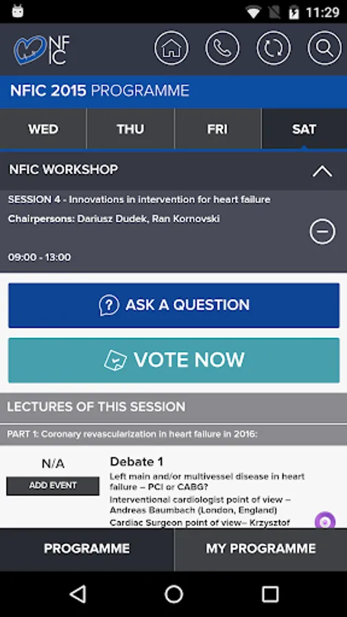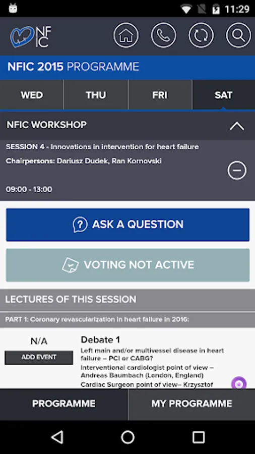 - Ask a Question feature, allowing the user to send in questions for specific sessions,