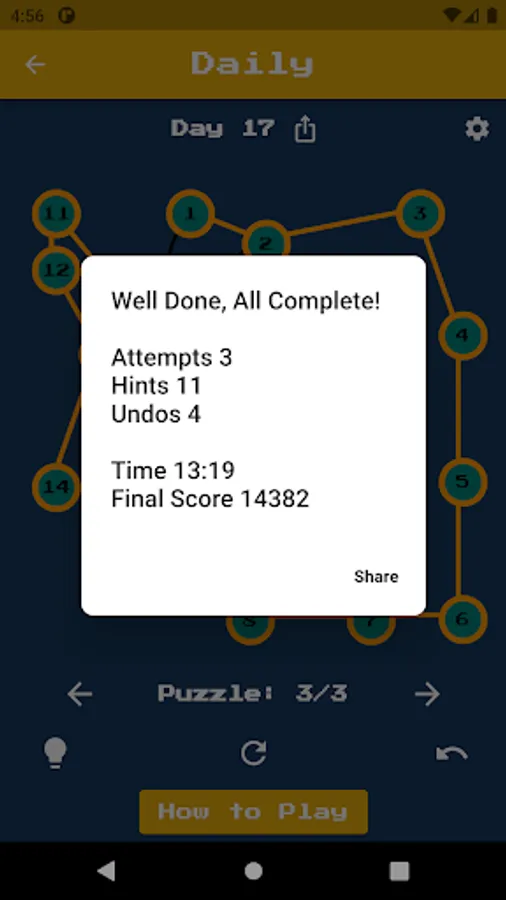 Completing the daily challenge unlocks rewards such as hints and undos which can be used to help complete the packs. Hints and undos can also be earnt by watching a rewarded ad.
