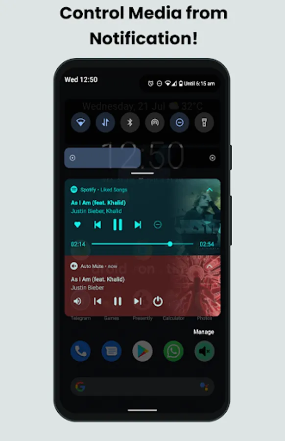 → Auto Mute also provides media controls inside the app so that you don't have to wander around 😇