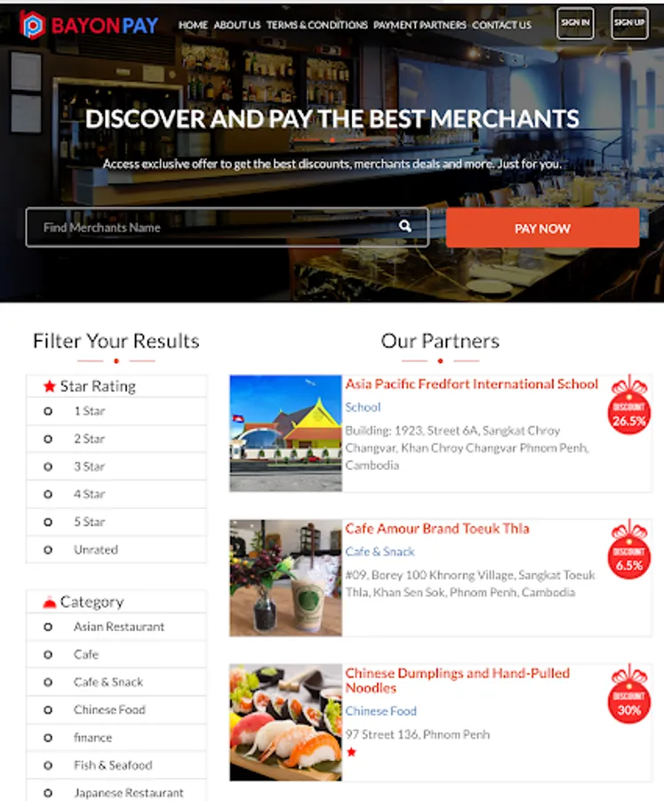 Bayonpay.com is the online payment website opened worldwide and based in Cambodia. The project is invested by Mom Varin Investment (www.varinholdings.com), which has its affiliated companies – V Japan Tech Inter (www.vjpti.com) and Asia-Pacific Fredfort International School (www.afisedu.com). V Japan Tech Inter is the leading company of LPG and fuel equipment and services while Asia-Pacific Fredfort International School is an IB PYP Curriculum School in Cambodia.