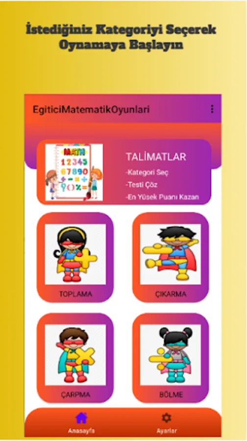 This Math app is very simple and easy that anyone from 7 to 70 can play. Train your brain and learn math.