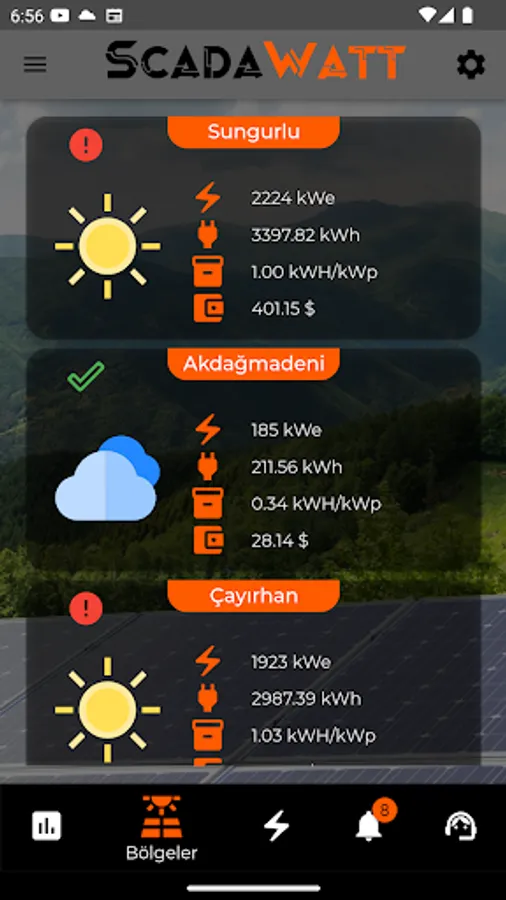 ScadaWatt is a tool where you can easily see how much your solar power plants have gained / lost.