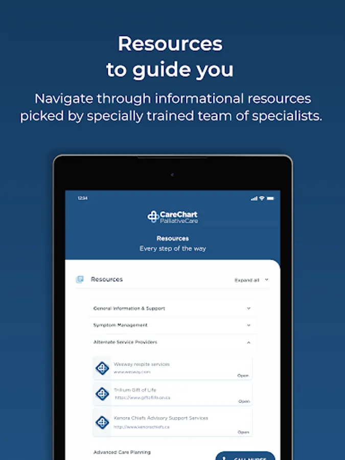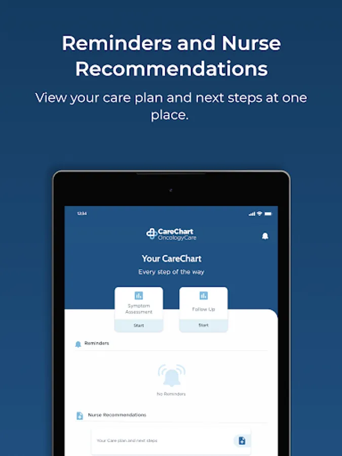 Receive specialized, compassionate care in the palm of your hand. Connect easily with a CareChart nurse through video or voice call. Complete a self-assessment of your symptoms to enable faster support. Review patient summaries from your clinician with easy to understand language. Receive exclusive access to specially curated resources, guidance, and support for you and your loved ones. Developed to improve the lives of patients, caregivers, and their families. Registering is easy with contact and diagnosis information only required once.