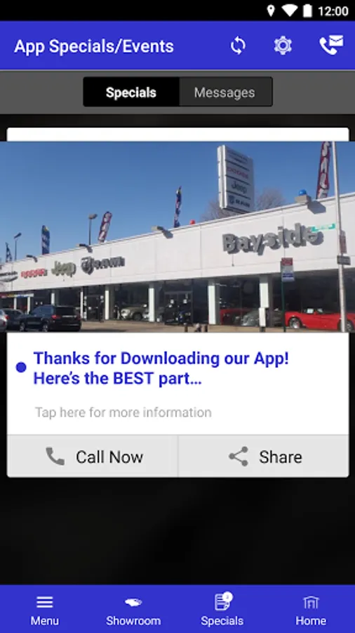 In addition, all the standard MLink App features are also here like: Call and email each department, get directions, view operating hours, get quotes on vehicles, order parts, etc etc…