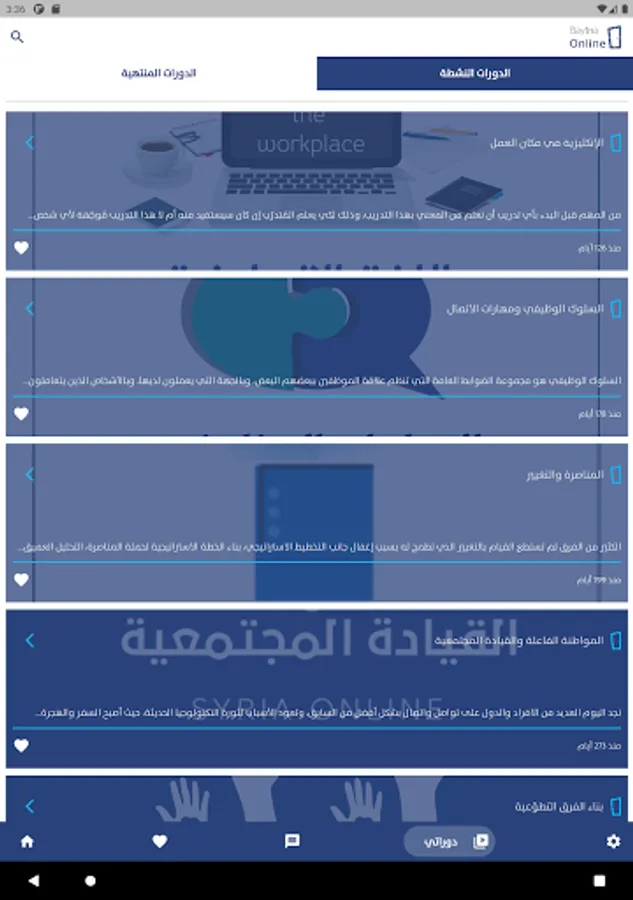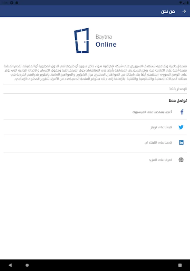 A creative and interactive platform targeting Syrians on a virtual network, whether inside or outside Syria in neighboring or host countries. The platform offers a secure online platform where Syrians can safely participate in discussions about democracy, human rights and current events affecting the Syrian situation; They can also build networks of concerned citizens around public affairs and topics, and develop their individual capacities in various professional, organizational and technical areas; In addition, the platform will provide support to a number of individuals to develop creative content.