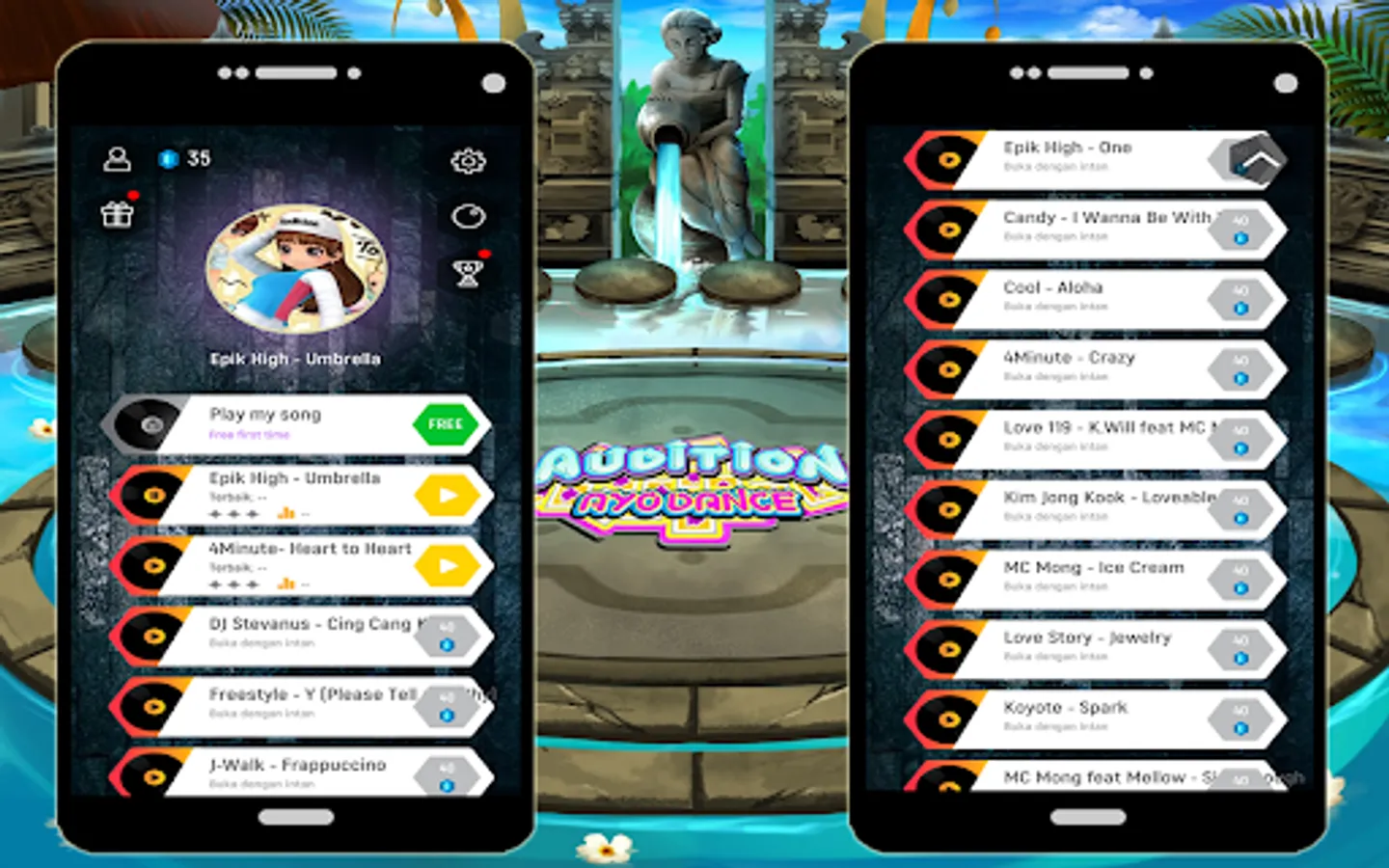 Choose your favorite song form our Ayo Dance Tiles Hop: KPOP EDM Rush list and only Touch, hold and drag on 2 sides to control the ball to jump over the tiles.