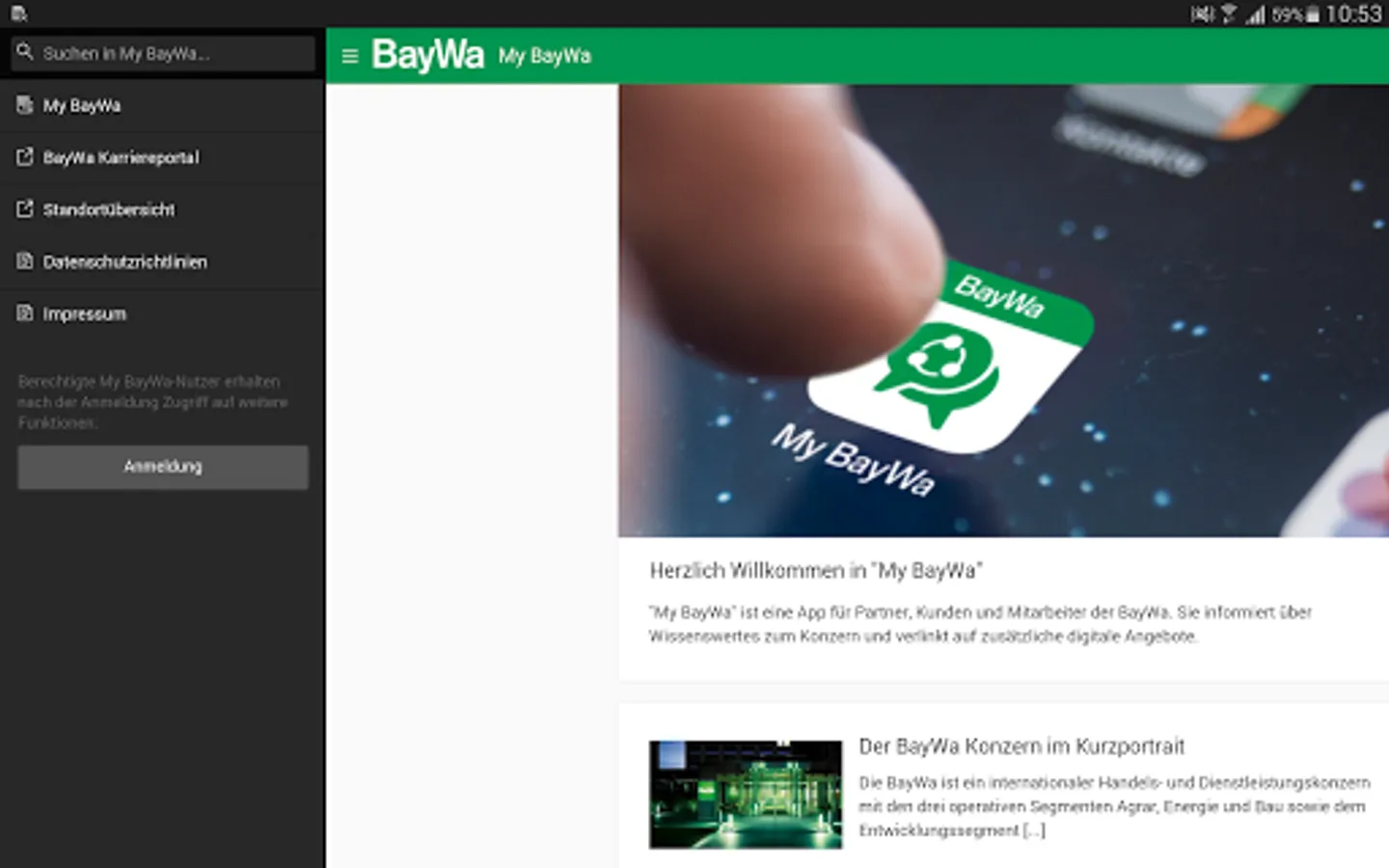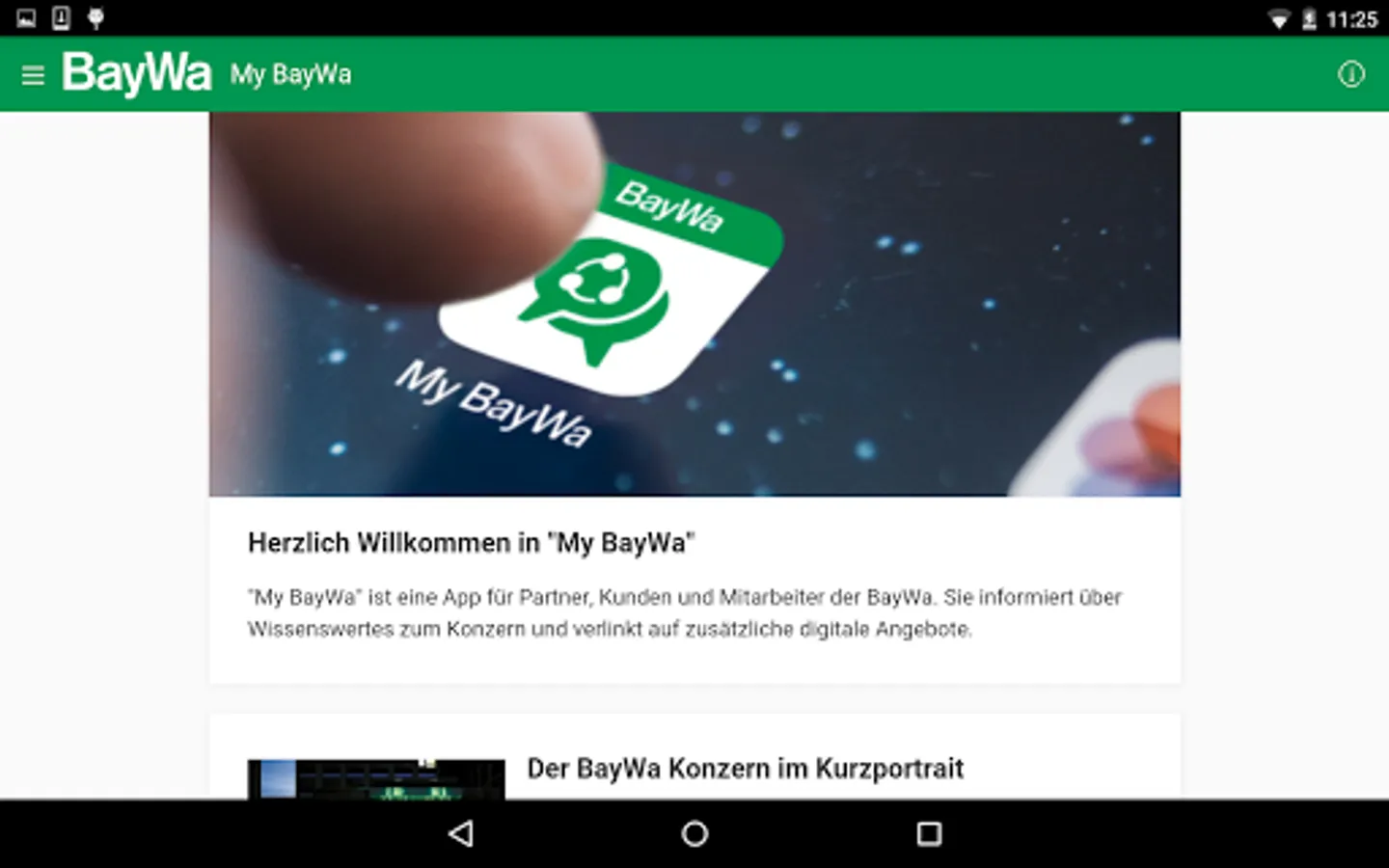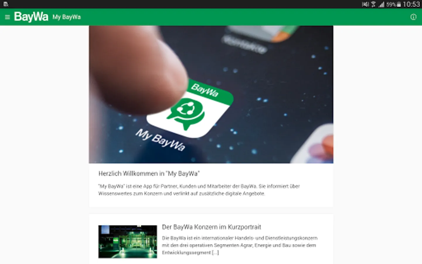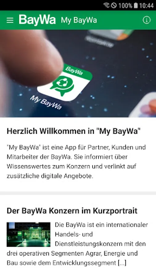 "My BayWa" is an app for BayWa partners, customers and employees. It offers interesting information on the Group and links to additional digital content.