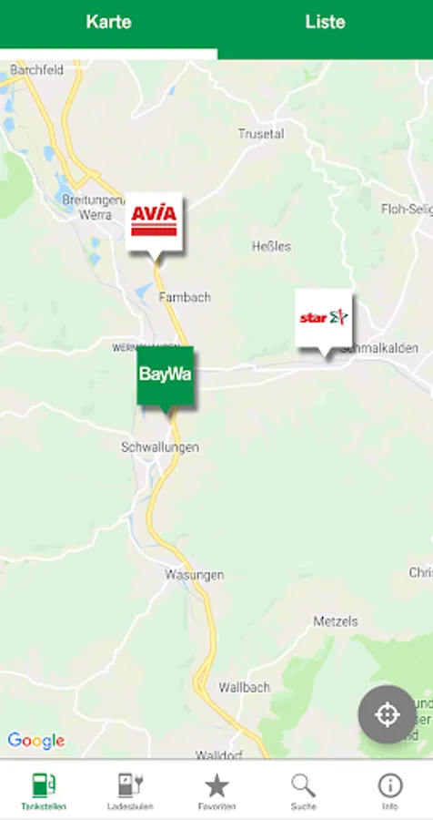 - Location of BayWa, AVIA, star and ALLGUTH gas stations