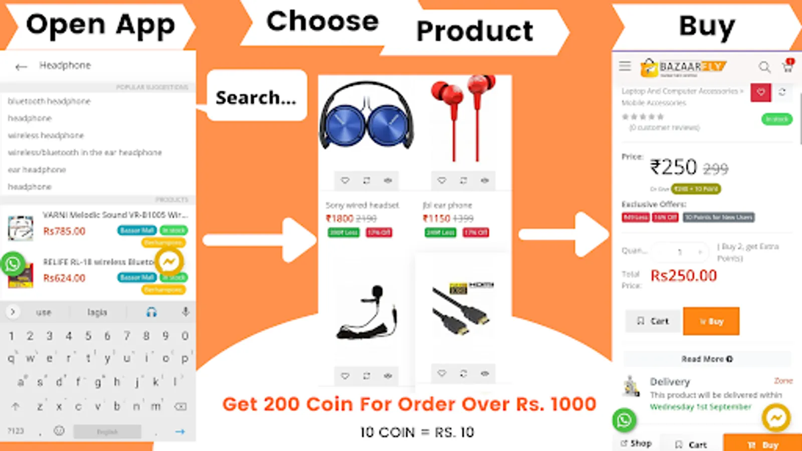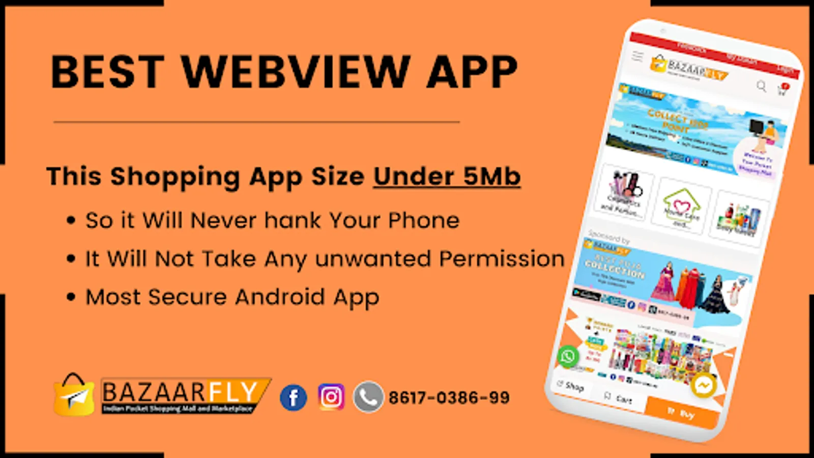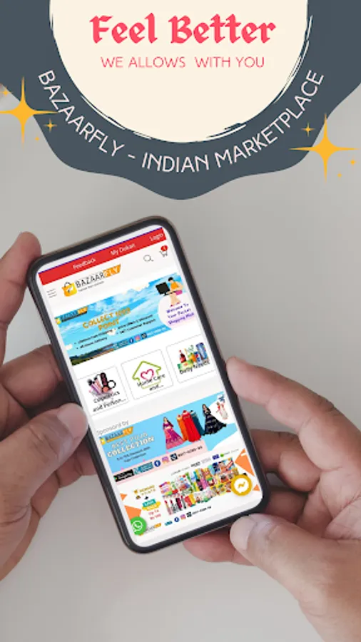 The Bazaarfly - The Indian Marketplace app brings for you 1 lack original product, at great prices & deals. Shop on the Bazaarfly App for the latest Goods like COSMETICS, ELECTRONIC GADGETS, SMARTPHONE AND MOBILE ACCESSORIES, HOME DECORATION, MAN FASHION, WOMAN FASHION, GIFT & TOY, JEWELLERY, BAG, PURSE, AND BELT, LAPTOP, AND COMPUTER ACCESSORIES, WATCH & CLOCK, DAILY NEEDS, POOJA SAMOGREE. Download the Bazaarfly - The Indian Marketplace App for free, from Google Play Store & enjoy online shopping.