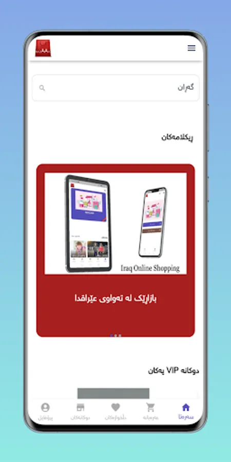 بازاڕێکە بۆ کڕین و فڕۆشتنی هەموو جۆرە کاڵایەک لە تەواوی عێراقدا و بەشێوازێکی نوێ و ئاسان دەتوانیت لەهەر شوێنێکی عێراق بیت کڕینەکانت ئەنجام بدەیت و ئاگاداری گواستنەوەی کاڵاکەت بیت تا دەگات بە دەستت.