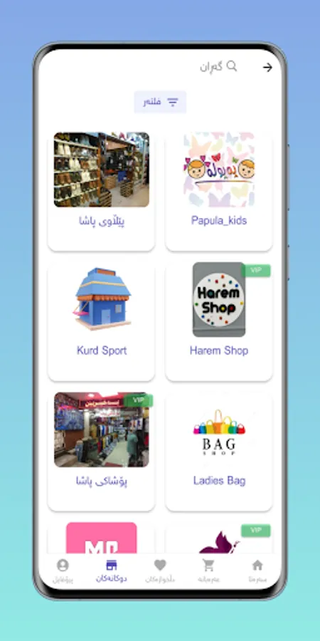 دەتوانیت سەردانی دوکانەکان بکەیت تەنها لە ڕێگای ناوی دوکانەوە گەڕانی خۆت ئەنجام بدە وە هەموو کاڵاکانی فڕۆشیارەکە ببینە و ڕاستەوخۆ کڕینی خۆت ئەنجام بدە.