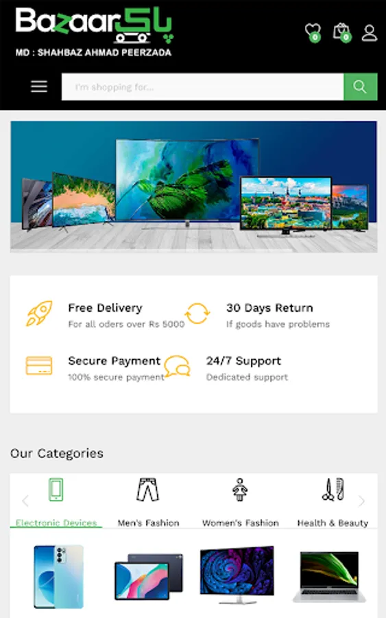 Bazaar Pak is an innovative and user-friendly mobile app that lets you shop for your favorite products from the comfort of your own home. With an intuitive and sleek design, you can easily browse and purchase a wide range of items, including electronics, fashion, beauty products, home goods, and more. The app features high-quality product images and detailed descriptions, making it easy to compare and select the best options for your needs. Plus, with secure payment options and fast, reliable delivery, you can enjoy a seamless shopping experience every time. Whether you're looking for a new smartphone, the latest fashion trends, or household essentials, Bazaar Pak has you covered. Download the app today and start shopping!