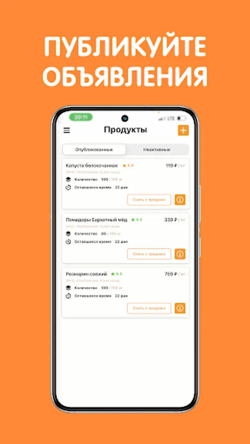 - each sale announcement has a publication time limit of a maximum of 1 month, and the volume of goods is up to 100 kg. When the product ends, the ad disappears.