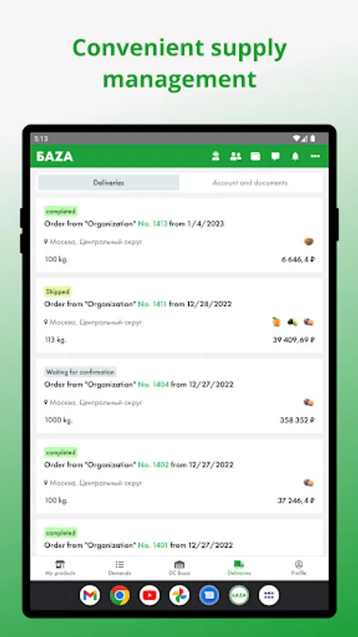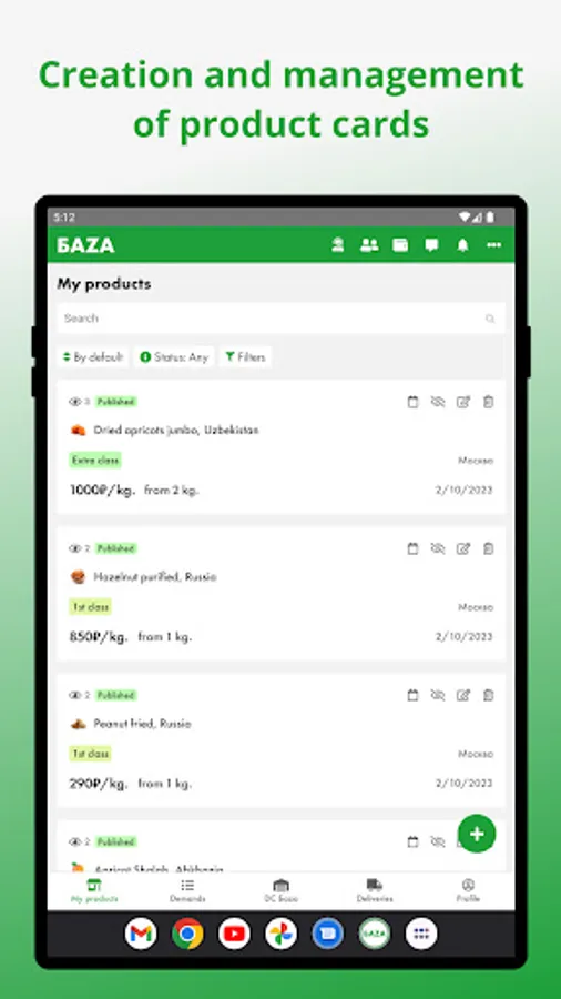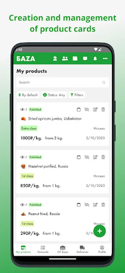 By selling products through the BAZA marketplace, you get the opportunity to sell your product throughout Russia, namely to the final wholesale buyer. The tools of our marketplace make it possible to control and manage the process at all stages of selling your products. Guaranteeing the security of transactions and timely payment, as well as the provision of a range of logistics services for the storage, packaging and delivery of products.