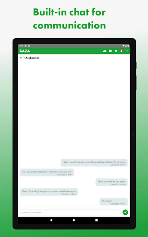 You get individual conditions from the marketplace: deferred payment, free shipping, bonuses and promotions. The ability to create Purchase Orders and conduct trades in decreasing steps according to your own assortment matrix, in order to quickly obtain the best prices from manufacturers and exporters, without the participation of intermediaries. BAZA guarantees timely delivery of quality products, due to a 3-stage quality control of goods and well-established logistics in Russia.On the marketplace, you can quickly, easily and conveniently find and order the required range of goods with delivery to any region of Russia. Deliveries are carried out promptly and on time in accordance with your requirements, and optimization of procurement processes with marketplace services will save you time and money.