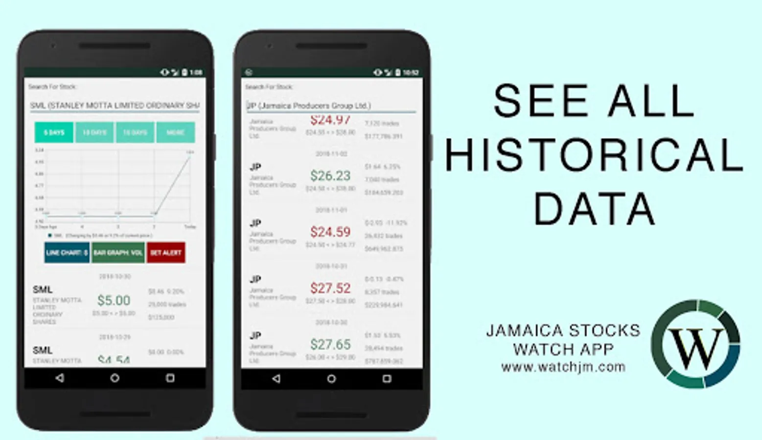Jamaica Stocks Watch App #WatchJM has Jamaica Stock Exchange (JSE) Stocks.