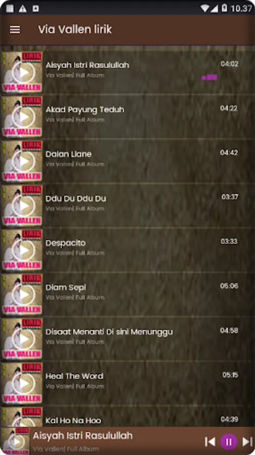 The wrong song application I dangdut koplo via Vallen has just been covered with his own style and way of singing, the advantages of this application can be used in offline mode, can play music simultaneously using other applications, save data packages.