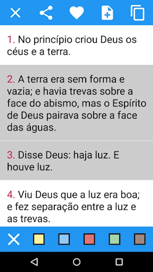 - Copy and share verses. You can copy selected verses to the clipboard, or share them with any application that is installed on your device.