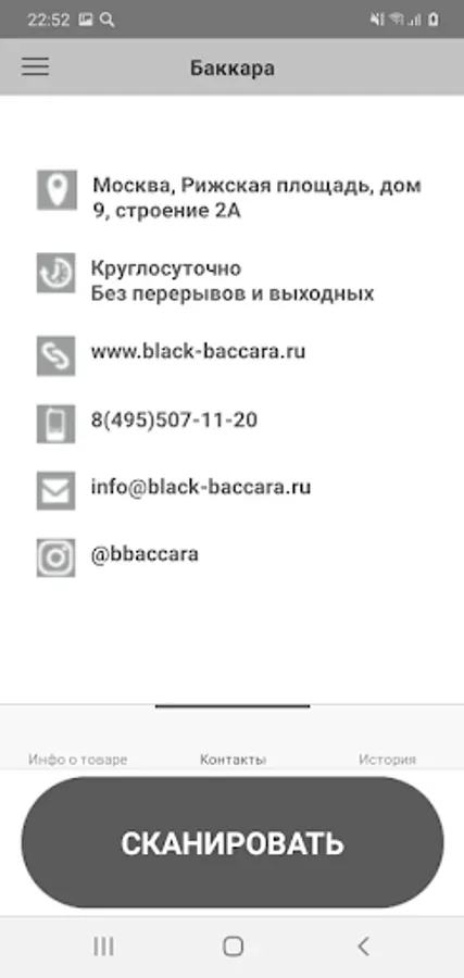 The application for the "Black Baccarat" flower shop allows, using the phone's video camera, to scan the barcodes of the store's goods and see the current prices on the screen.