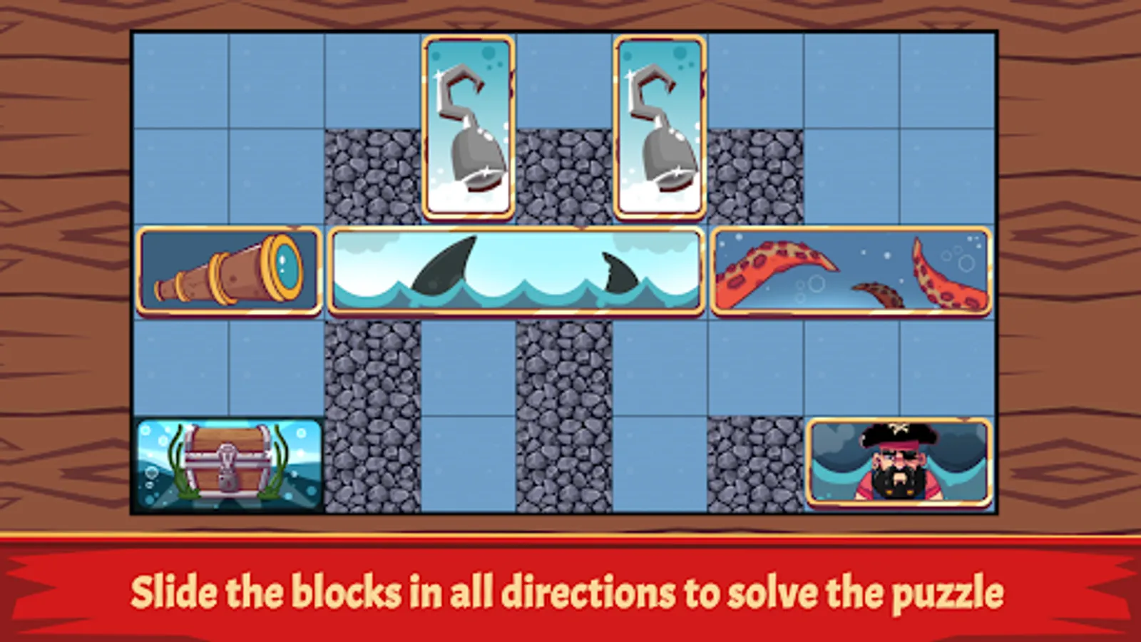 Slide away irregularly shaped blocks in all-4 directions to pave the way for The pirate to the trasure. Some obstacles are non-movable, and many levels have strange and surprising boundaries which make this game a unique and challenging experience.