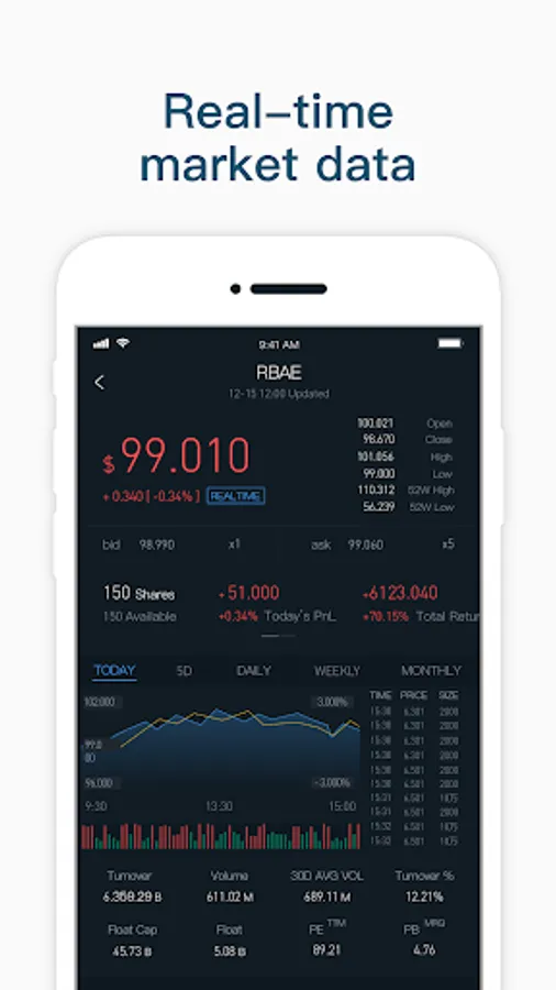 Our servers stream market data from exchanges in real-time so you will get accurate securities quotes. We also provide corporate fundamentals as well as news on earnings, dividends, and corporate actions so you can stay on top of your investments.