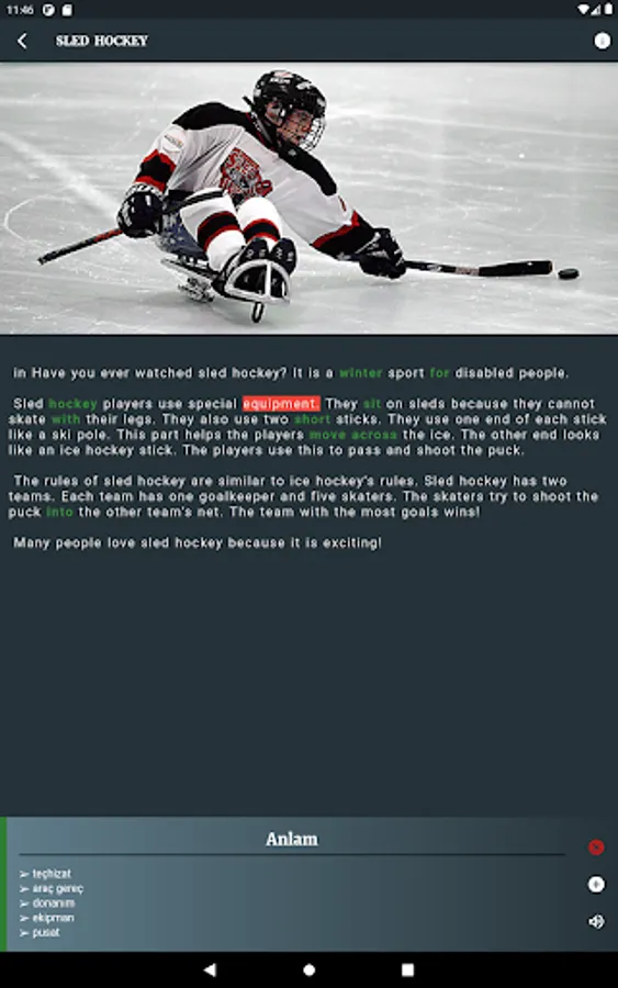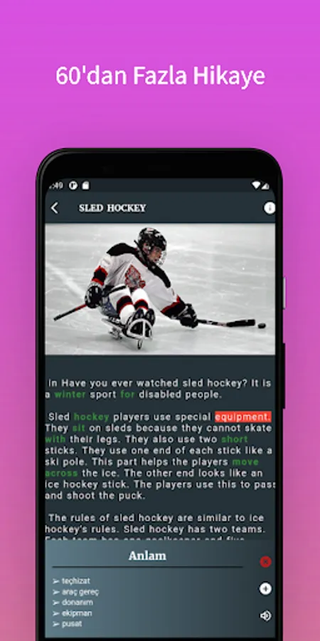 Uygulama sayesinde kullanıcılar İngilizce seviyelerini geliştirebilecektir. Uygulama dinleme, okuma, yazma, quiz gibi birçok özelliğe sahiptir.