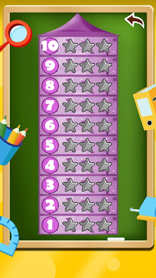 Digital Tower: Each divider is a different tower level with increasing difficulty. Collect all stars to prove your outstanding knowledge of the division table