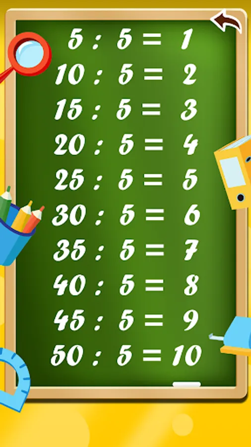Division table is multiplication in reverse. The best way to learn the division chart is by playing. Can be fun to play with a friend. The best grades in school will help you get this app.