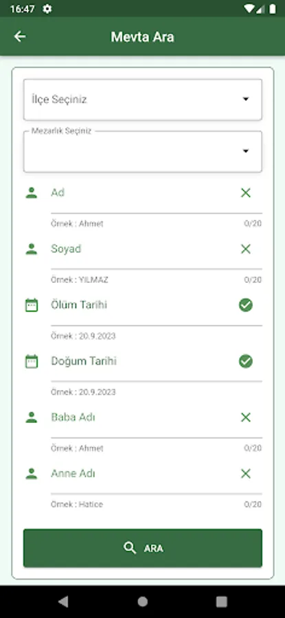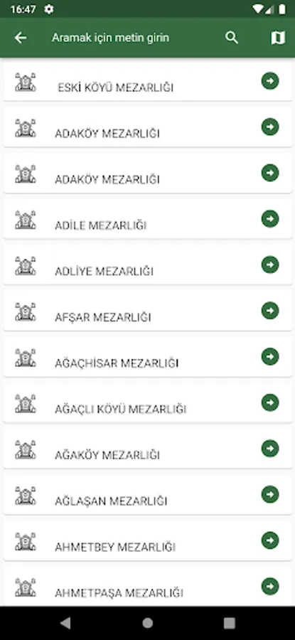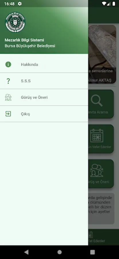Bursa Metropolitan Municipality, thanks to the Cemetery Information System Mobile Application, can access the addresses and transportation information of the cemeteries included in the system within the borders of Bursa province, the location of the grave of your relative and the picture of the grave stone by using the body search screen, directions on how to get to the relevant grave, historical grave stones. Location, 3D model information, Arabic and Turkish pronunciations and meanings of the prayers to be read in the cemetery will be easily accessible. Additionally, with the "Notify" option, you can optionally receive information about people who have passed away in the neighborhoods you choose.