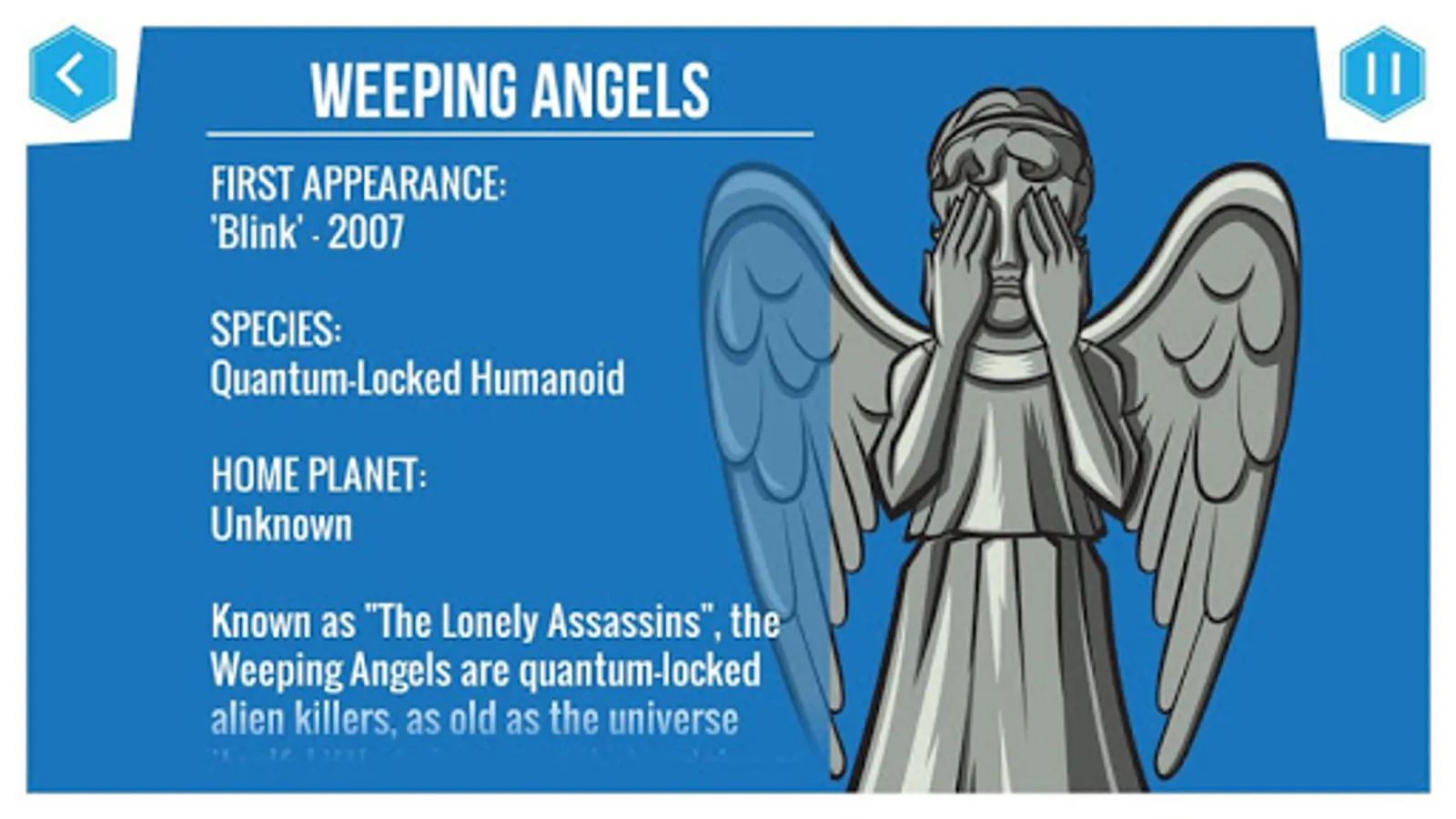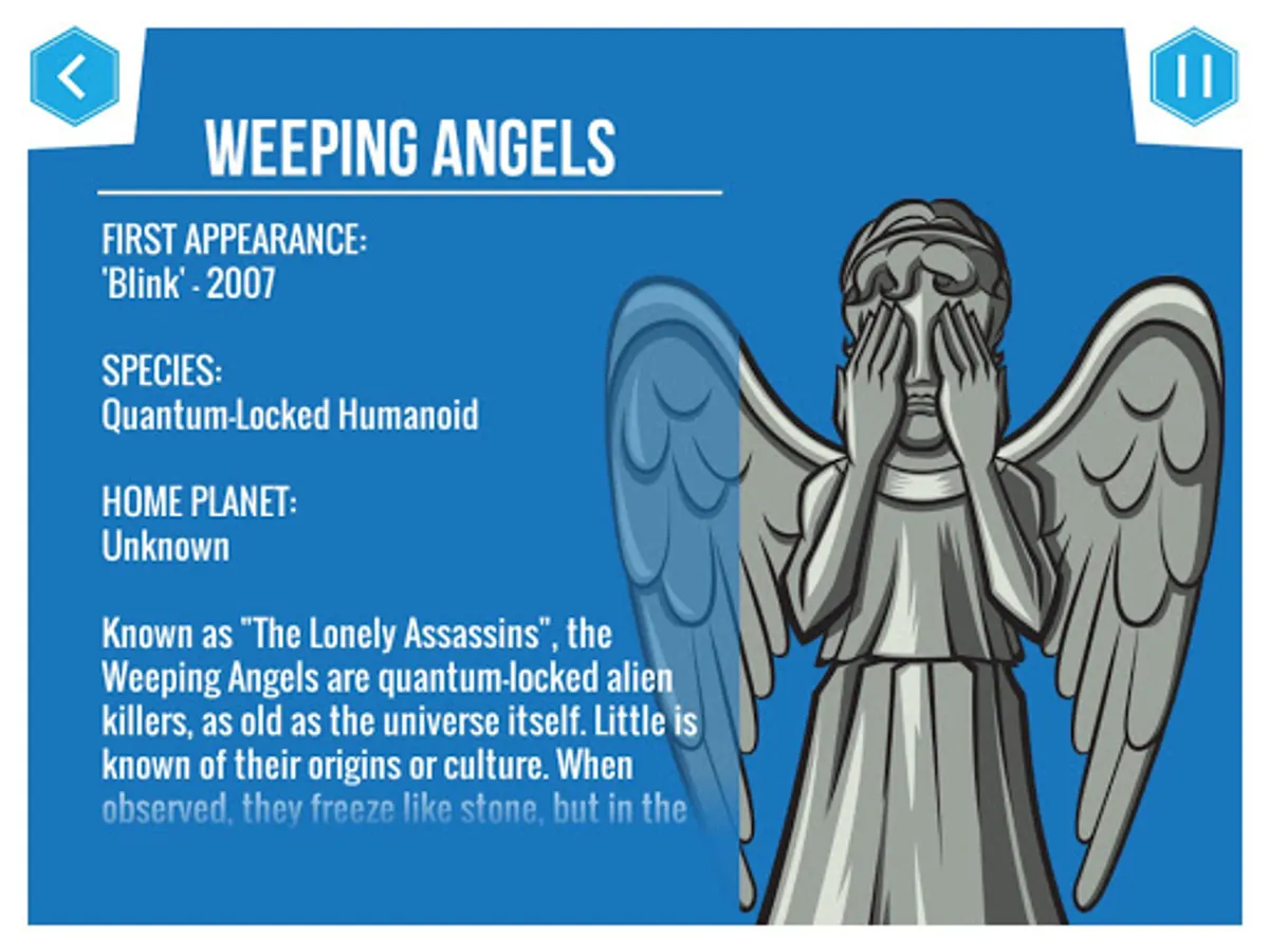 Want to pit the First Doctor against the Judoons in Manhattan? Or recreate the Tenth Doctor's crusade against the Weeping Angels? Well now you can! Generate your own Doctor Who adventures using this intuitive interface. Select the optimal page layout, pick a panel to design, choose a striking background and then fill the scene with characters, Monsters, speech bubbles, props and sound effects. Comic Maker features edit tools that allow you to position, re-size, flip, rotate and duplicate the characters and objects until you’ve created the perfect snapshot of Doctor Who in action. Once you’ve finished your comic you can watch your adventure unfold using the app's Comic Reader or save it to your camera roll where you can send it to a friend.