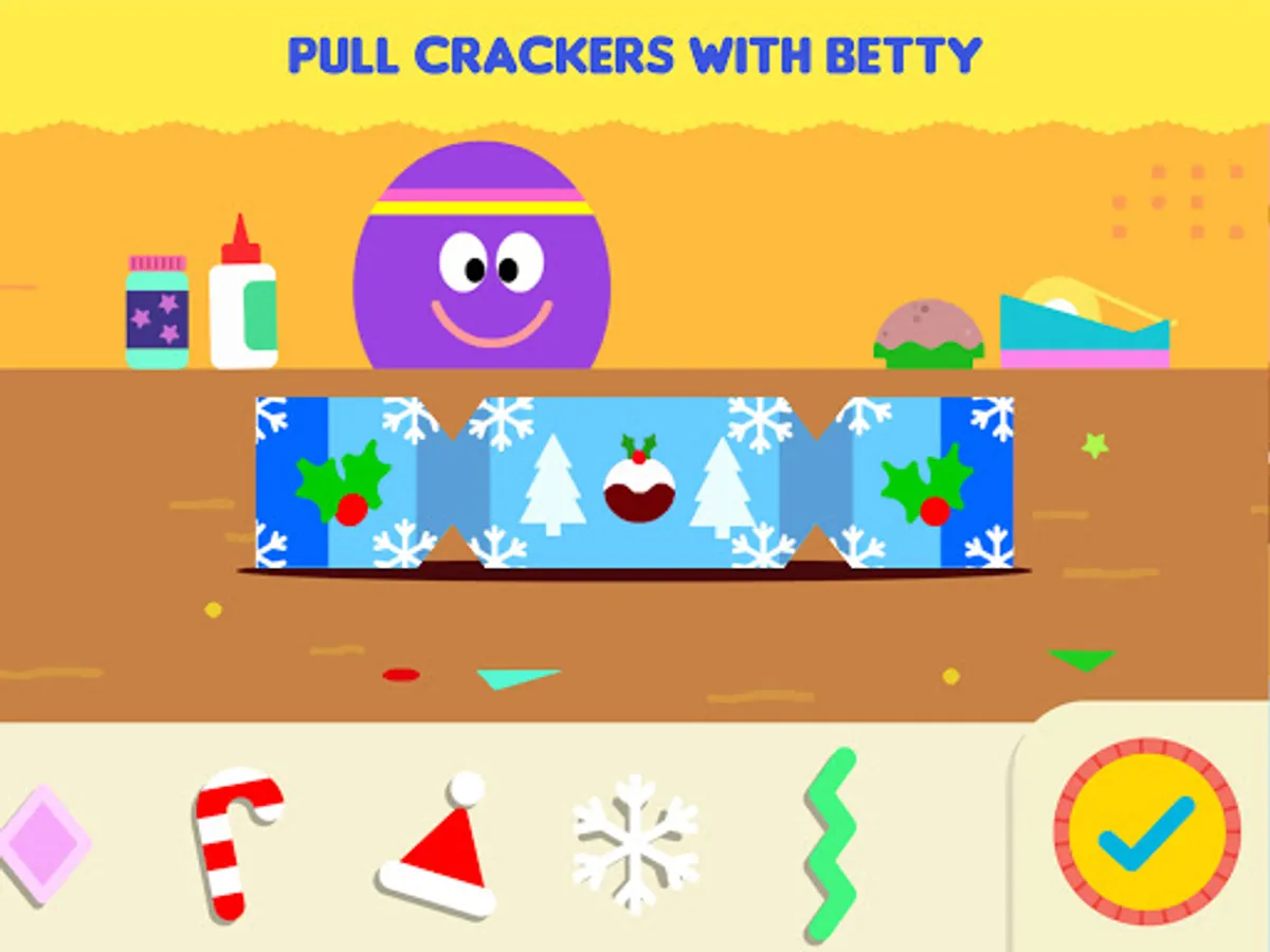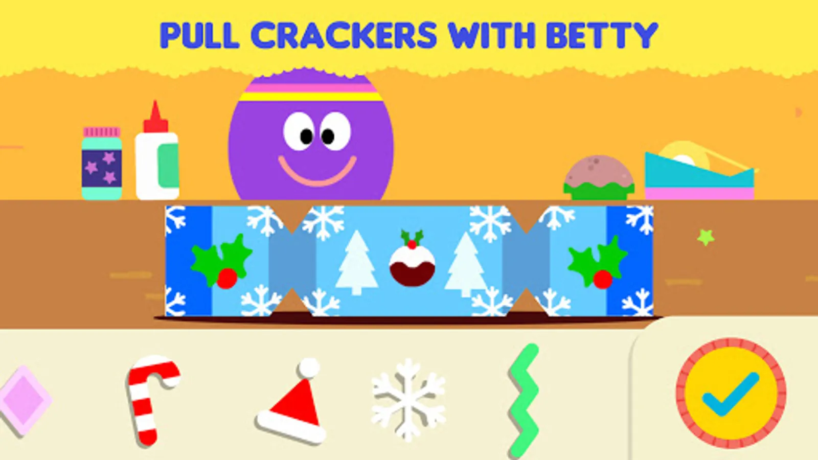 Betty loves a crackingly good Christmas Cracker - so let’s help her to make one. After you’ve decorated your design, give it a pull to see what you have won! Listen up for an almighty bang!!