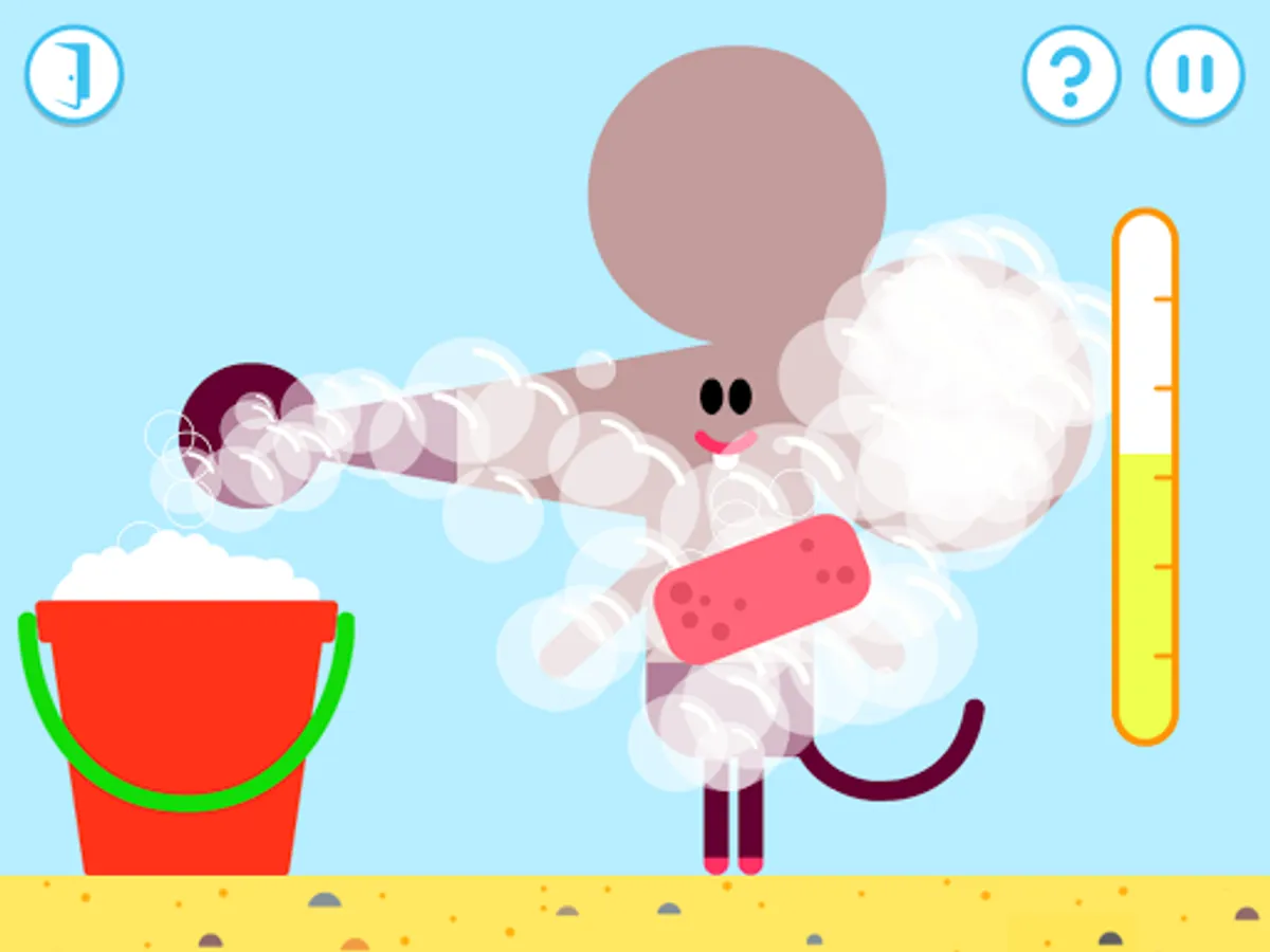 Washing: How did Mouse get so dirty? She could do with a good wash! First get rid of the leaves… next, cover her in soap… and finally, pop every last one of the soapy bubbles! Excellent cleaning!