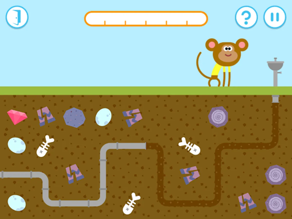 Drinking: I think Monkey could do with a drink. Let’s get him some water by connecting the pipes to the water fountain! What a splendid path you’ve chosen, Squirrel!