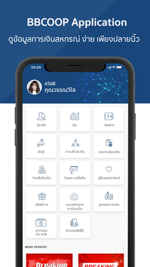 BBCOOP, Saving Cooperative Application, Budget Bureau of Limited Allowing members to check the balance of deposits, loans, stocks, print receipts, etc.