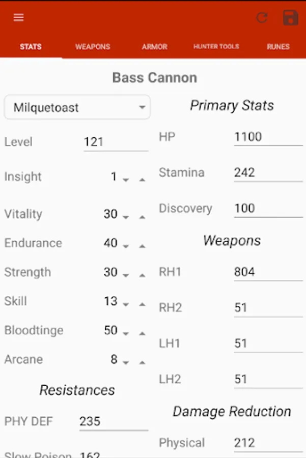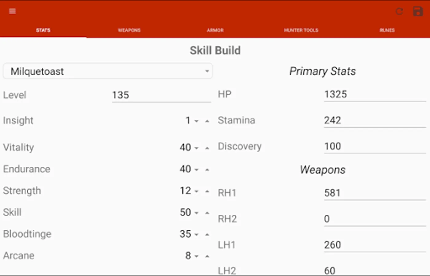 Allows you to easily plan out multiple characters and calculate weapon damage with blood gems. Share your character with friends by exporting the character as a code and sending it to them. Sort weapons by multiple types of scaling with the weapon stats screen.
