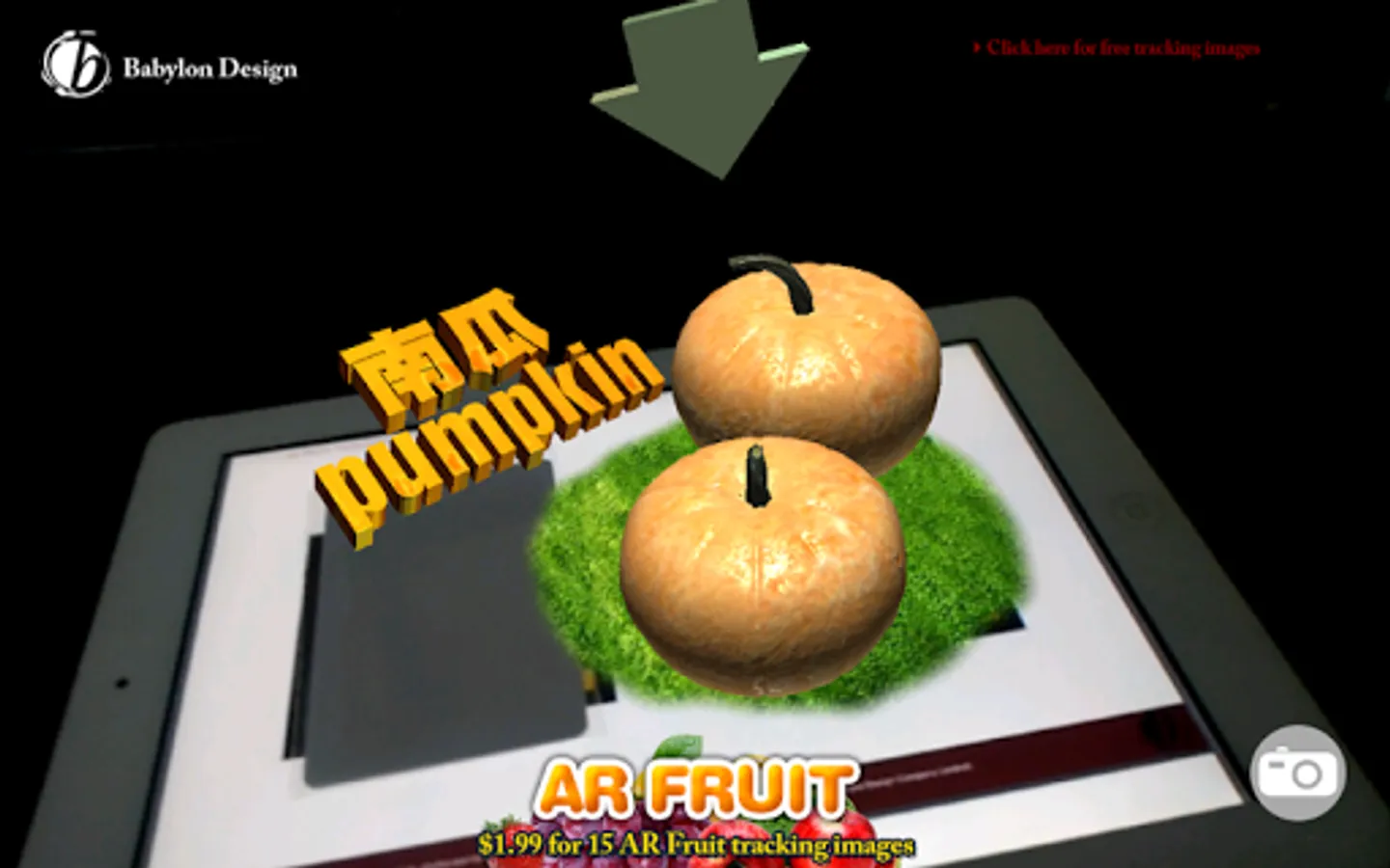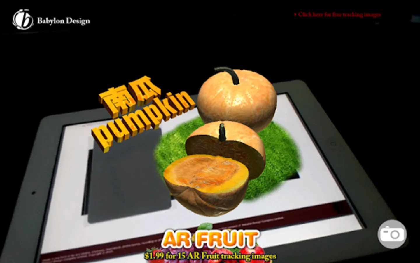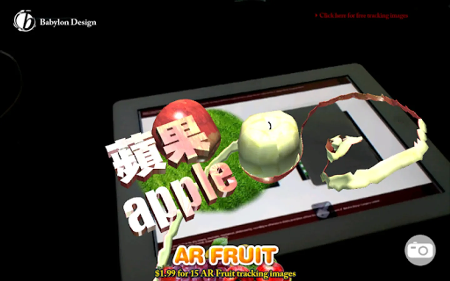 AR FRUIT is augmented reality application, you can see the real fruit in this application and teach your child using ar card, we now have 15 models of fruit with interactive animation, and for the future will add more, please pay attention to our website, if you want to download the free tracking image, please go to "http://bbdco.com" and Add ((((((FACEBOOK LIKE)))))) we will send you free 15 AR marker!!!!!!!!!