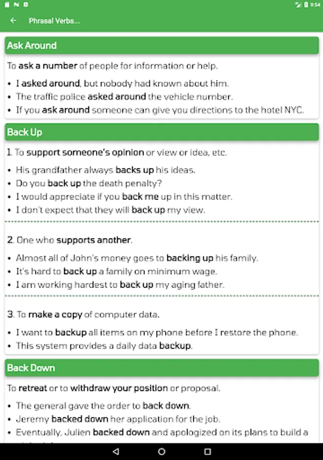 - Phrasal Verbs - Use of the most frequently used English phrasal verbs