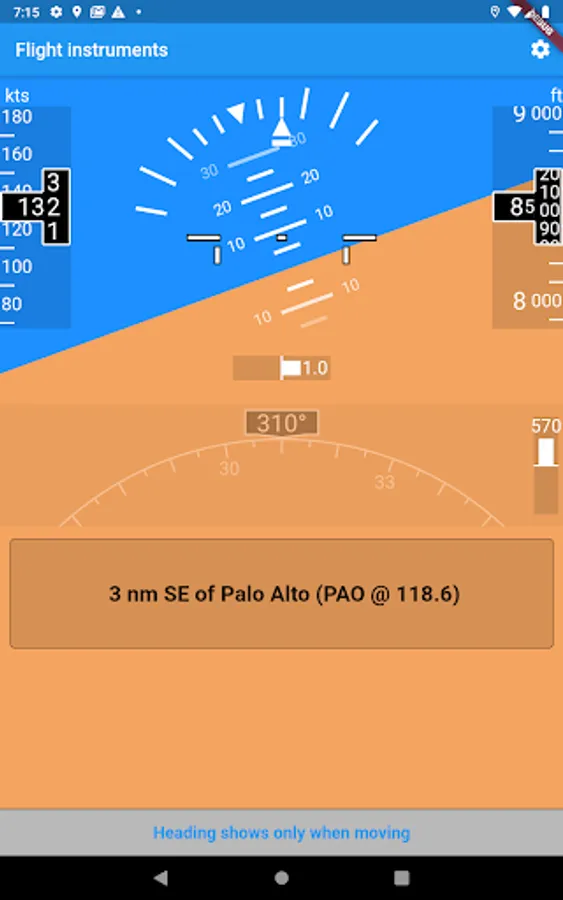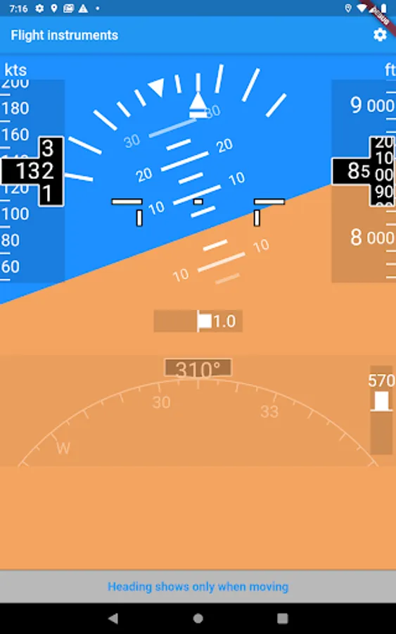 Gyro Attitude Indicator and other key flight instruments on your Android.