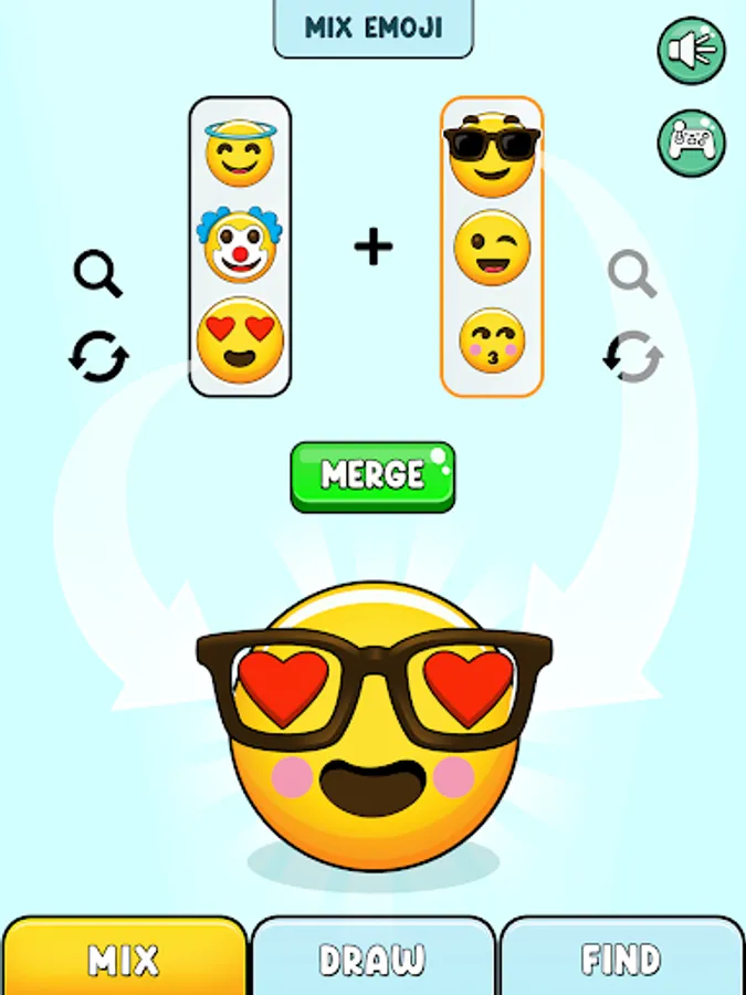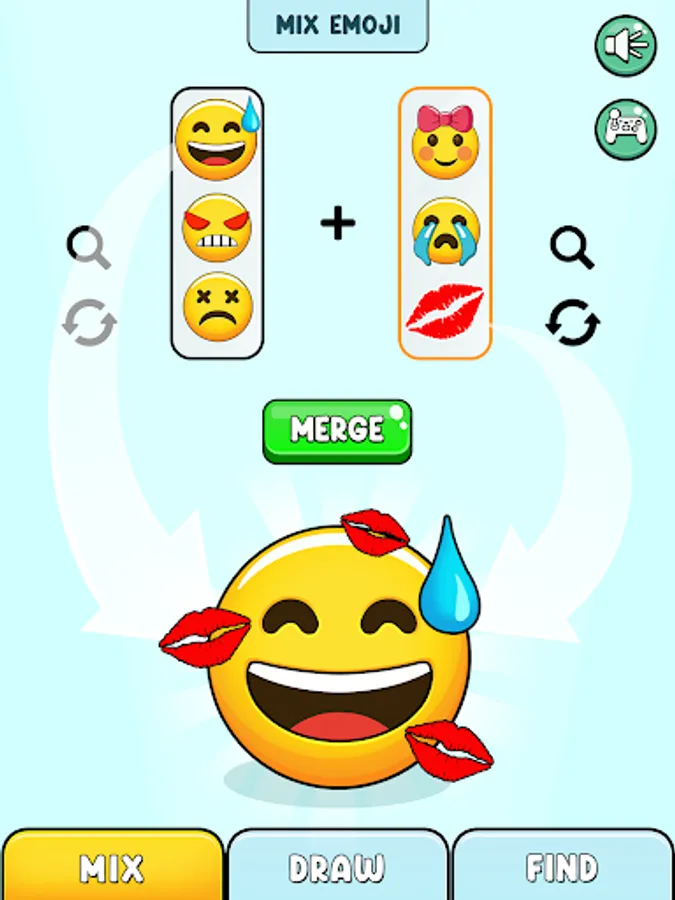Lets play a new emoji puzzle game! Welcome to a unique puzzle game with fluffy Emoji Mix and Fun EMOJI MERGE DIY Mixing. Use your mixing imagination to mix emoji in pairs, explore new ones, Solve the Emoji Puzzle now!