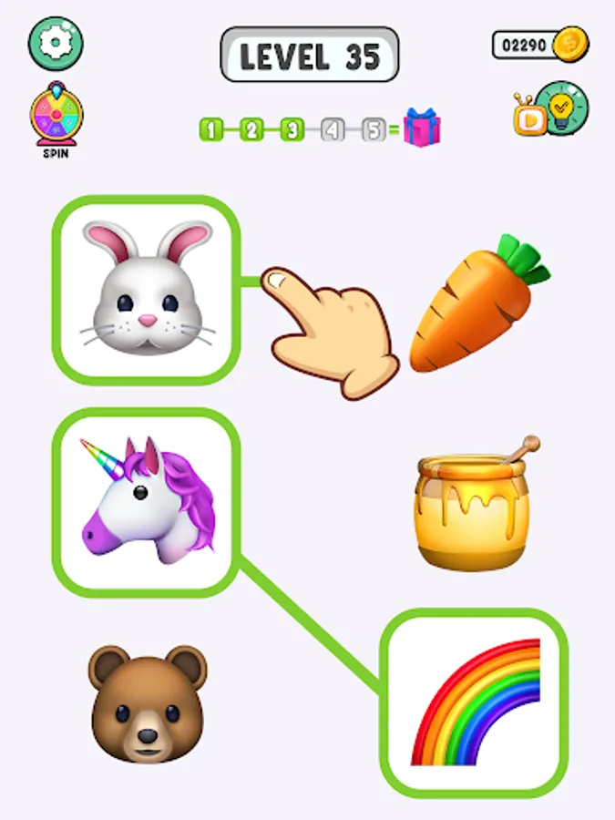 All you need is rich imagination to match emojis in Emoji Puzzle. Let’s find related emoji and connect them. After finishing you will win game. That's all? It's not as easy emoji puzzle game