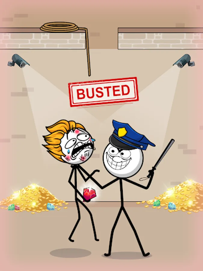 The puzzle thief simulator game tests your brain as you thief strategy to steal valuable treasures, breaking bad and outsmart security systems in thief puzzle trials to pass a level. Each level needs robin the thief strategy, brain breaker riddles, ensuring hours of brain test fun with cool math games. This Trickiest Thief troll stickman thief puzzle game level has a different brain teaser, Amazing troll thief puzzle game is both satisfying and relaxing. Use your brain with this offline funny puzzle game for you has different tricky puzzle jigsaw challenges and stick man thief troll games to help you become a master thief simulator in this offline troll puzzle game. Using simple swipe controls to this puzzle game, thief troll puzzle game is one of the best free stickman puzzle games available.