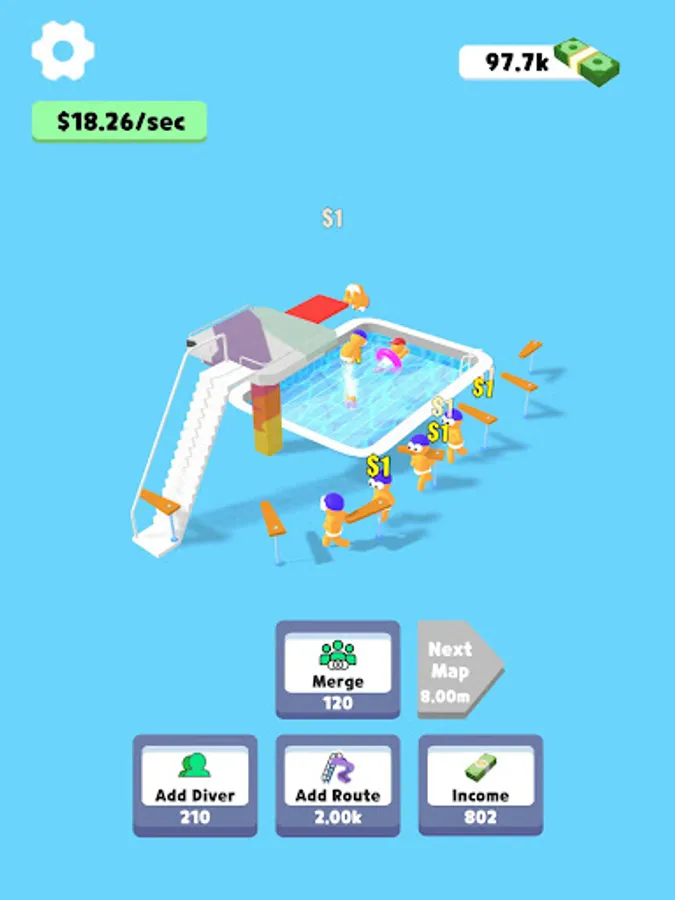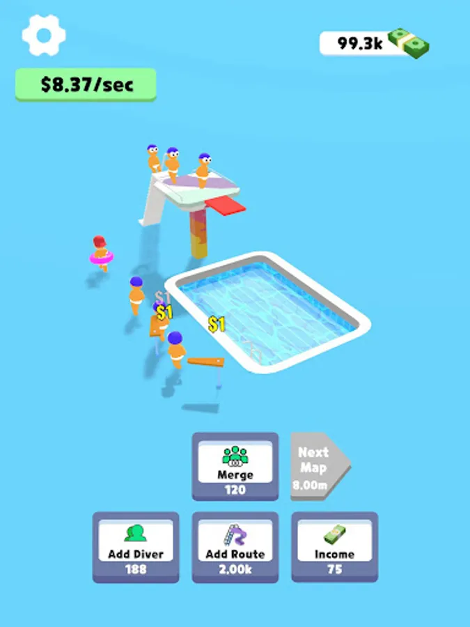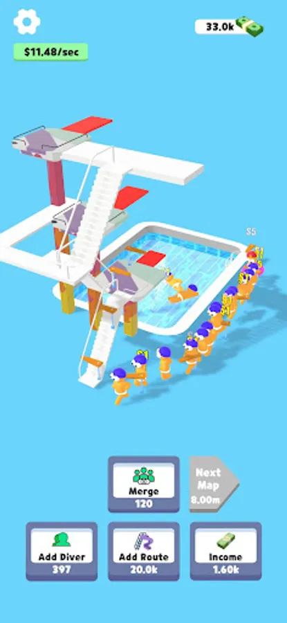 Click, click, click! Speed up your diving, synthesize more advanced characters, and get more money!