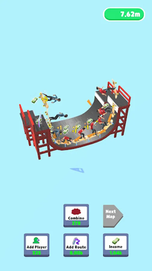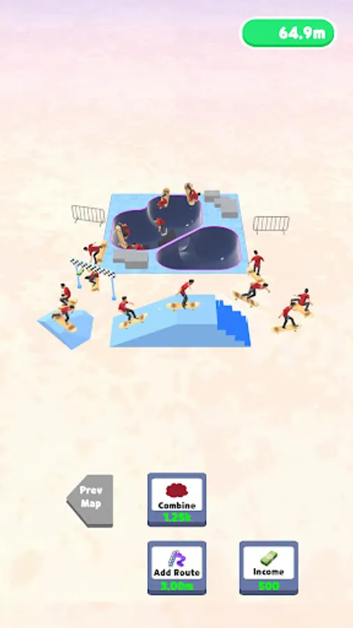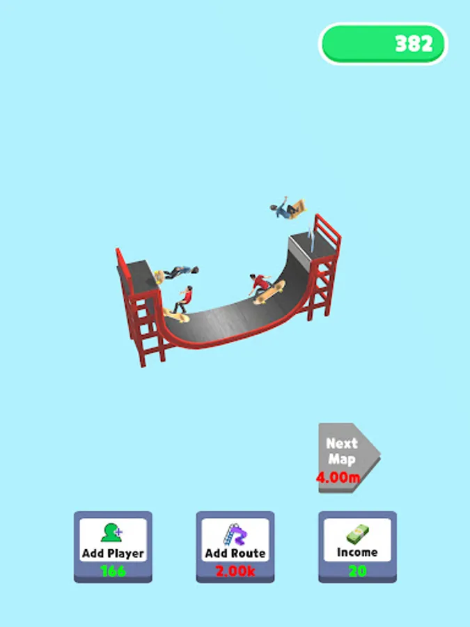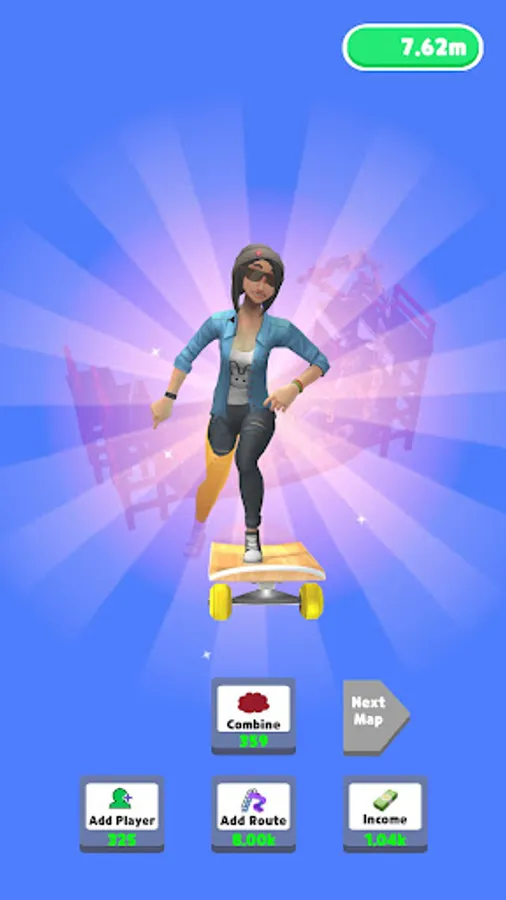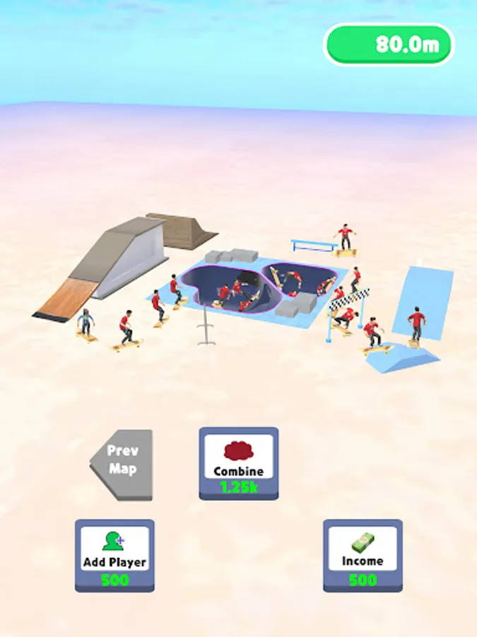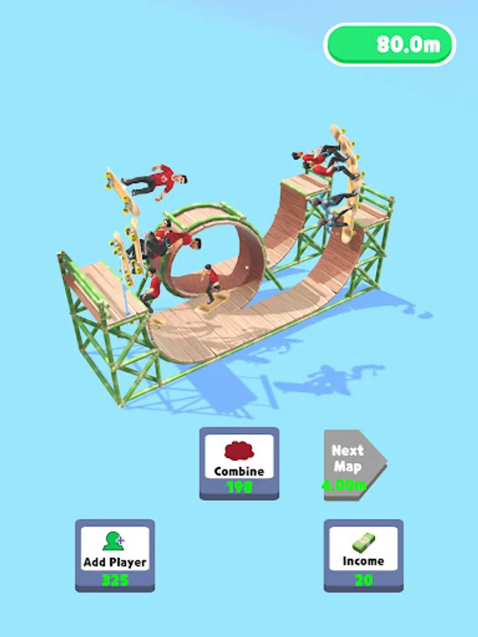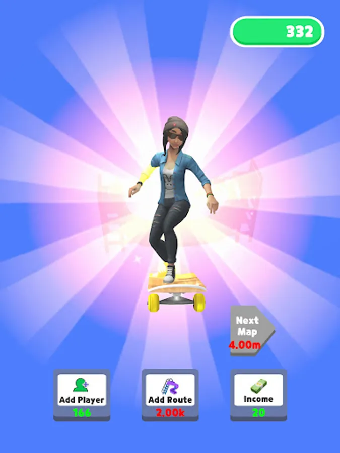 Quickly tap, screen, synthesize more advanced skateboard game characters, earn more money, and upgrade better scenes