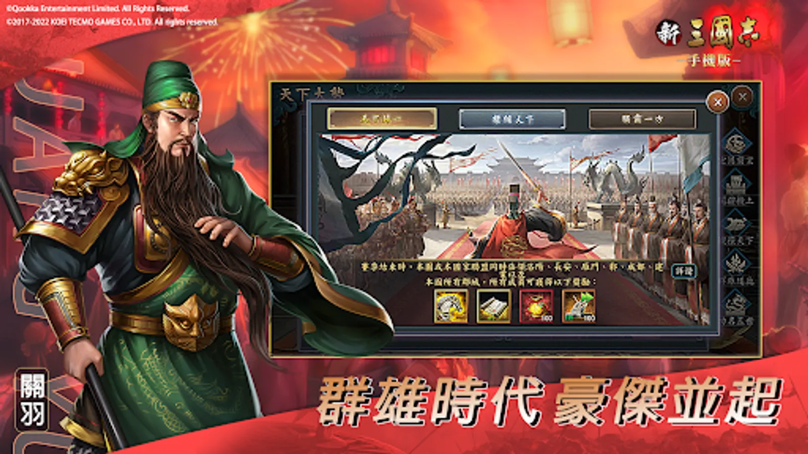 "The New Romance of the Three Kingdoms" is the only mobile game in Hong Kong, Macao, Taiwan, Singapore and Malaysia authorized by Koei Tecmo, based on "Three Kingdoms 11". It is an orthodox SLG that allows you to experience military strategy. Here you can experience the "deep strategic" and "rich collection elements" that are different from other SLGs.