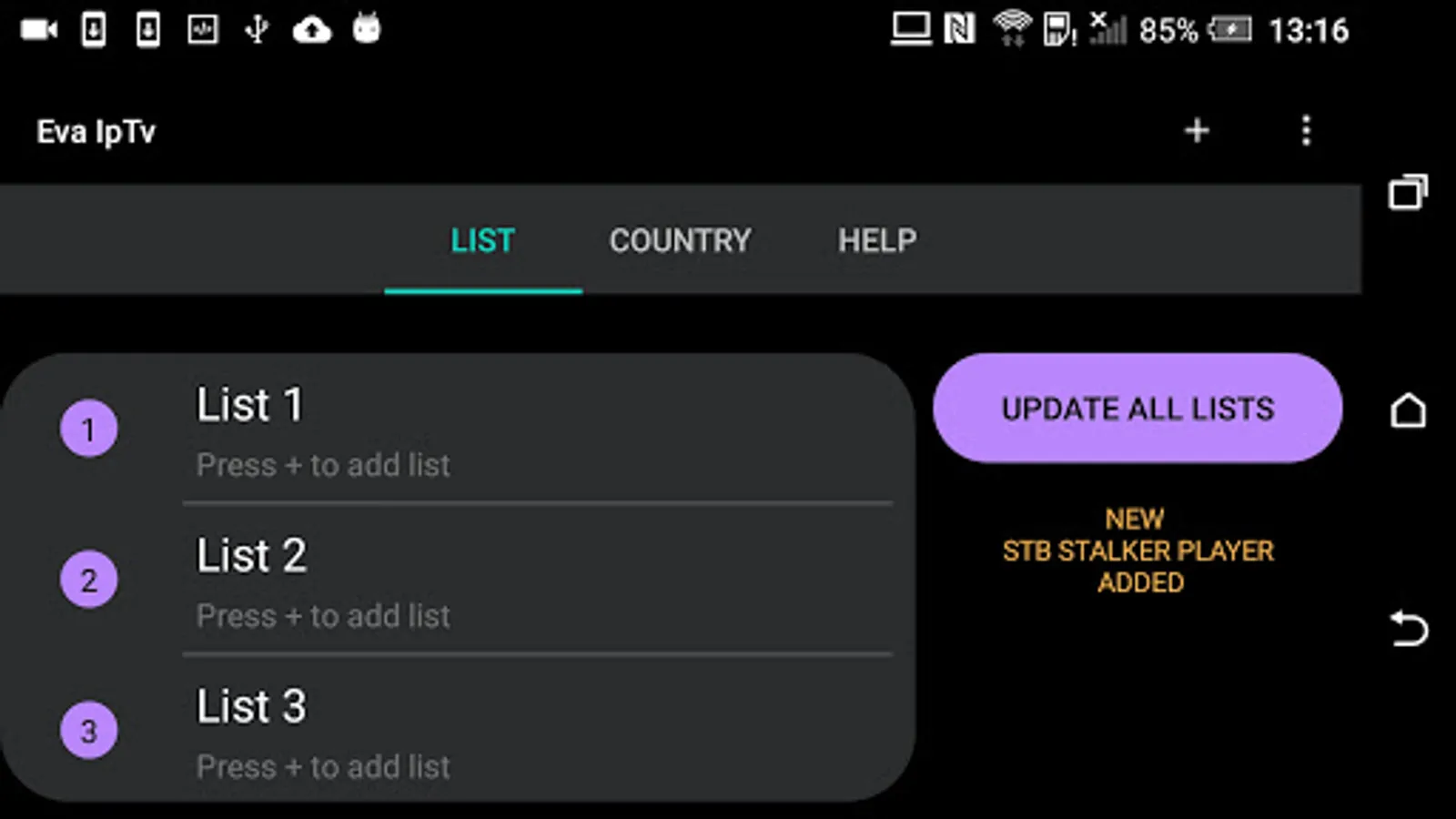 - return to the home menu and update all lists with the Update All Lists button or the selected list by long-pressing the list name